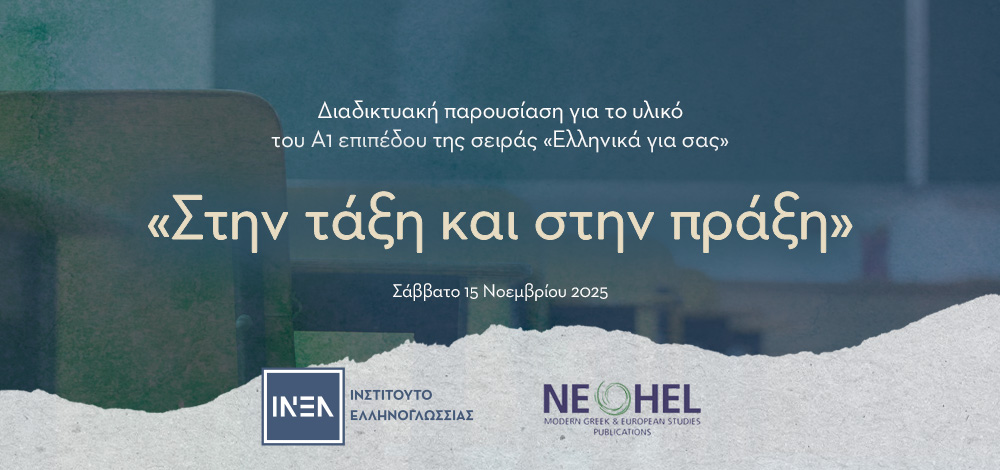 Το Ινστιτούτο Ελληνογλωσσίας (INEΛ), σε συνεργασία με την Εταιρεία Νεοελληνικών – Ευρωπαϊκών Μελετών και Εκδόσεων (NEOHEL), διοργανώνει πρώτη δωρεάν διαδικτυακή παρουσίαση για το υλικό του Α1 επιπέδου της σειράς «Ελληνικά για σας».